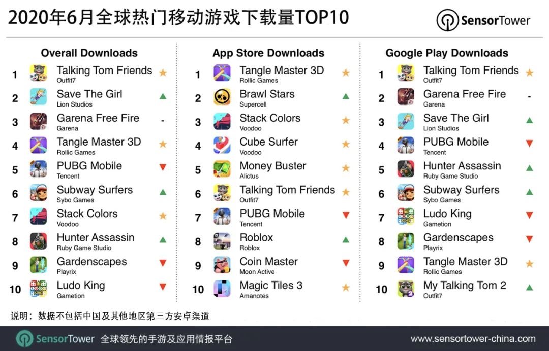 2020 年 6 月全球热门移动游戏下载量排名:腾讯《和平精英》进前五