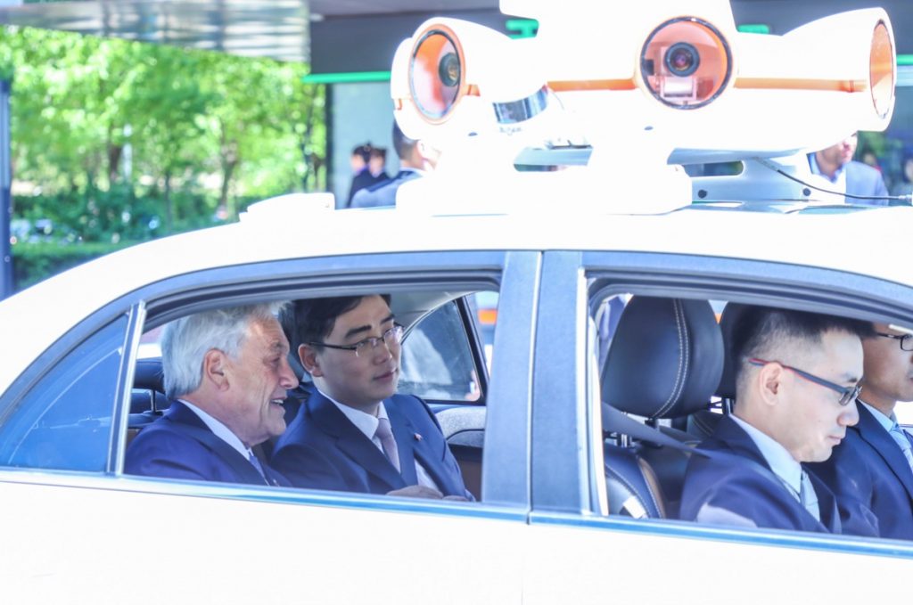 本年 4 月,智利总统塞巴斯蒂安·皮涅拉抵达滴滴出行总部,在程维陪同下,观赏了滴滴智能出行数据体系、才智交通技能演示并一同试乘了自动驾驶测验车。