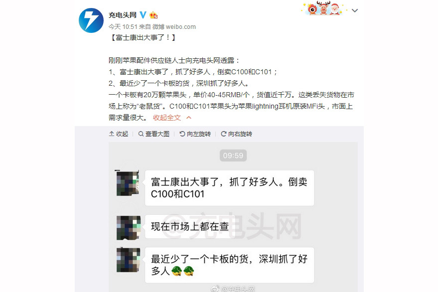 除被发现盗去的 Lightning 接头是 Apple 原装 C100 和 C101 MFi 认证耳机头外,更有指因为有内部职工倒卖这些零件而被逮捕——总数高达20万个,背面肯定是由安排有预谋的多人合作作案。
