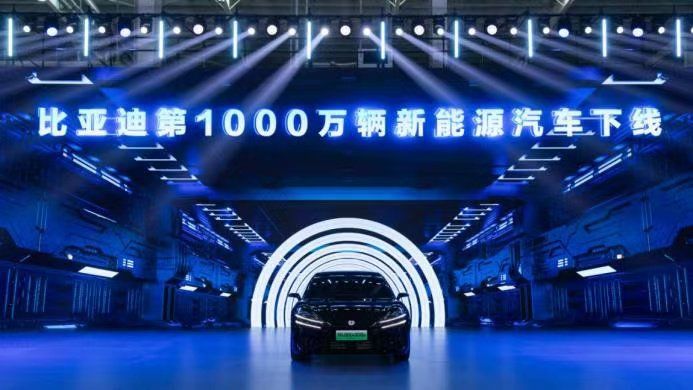比亚迪第1000万辆新能源车下线,并将投 1000 亿元加码人工智能